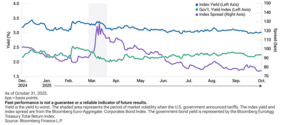 Ein weiterer wichtiger Aspekt des Marktes ist sein Durationsprofil, das derzeit bei etwa 4,4 Jahren liegt. Das bedeutet, dass europäische Investment-Grade-Unternehmensanleihen potenziell profitieren könnten, wenn sich die Wirtschaftsdaten verschlechtern und dies zu einer weiteren Zinssenkung durch die Europäische Zentral bank führt. Zumindest könnte die Durationskomponente als Stoßdämpfer wirken, falls es zu einer Risikoaversion kommt, die zu einer Ausweitung der Kreditspreads führt.