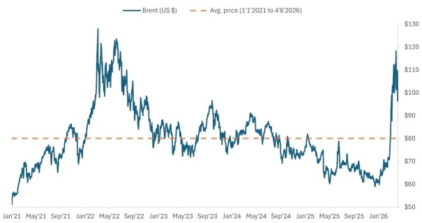 Die Futures-Kurve bietet einen nützlichen Einblick in die Marktstimmung jenseits der Schlagzeilen. Während die kurzfristigen Kontrakte volatil waren, sind die Preise für längerfristige Kontrakte nur moderat gestiegen. Der Teil der Kurve für 2027 hat sich nach oben verschoben, deutet aber weiterhin darauf hin, dass sich die Preise im Laufe der Zeit wieder in Richtung der Mitte der 70-US-Dollar-Marke einpendeln werden.